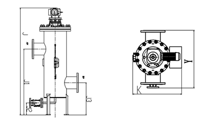 | 型號 | 管徑 | 出入水口 | J | J1 | J2 | Y | K | 過濾面積 | 處理水量 | 重量 |